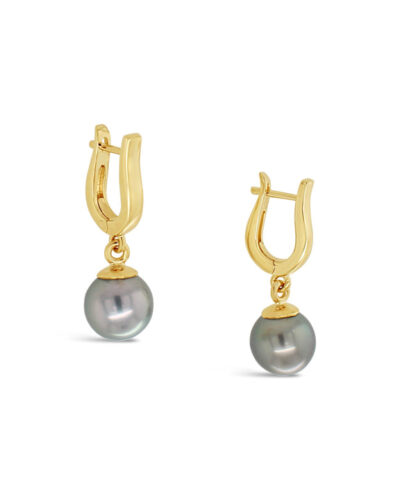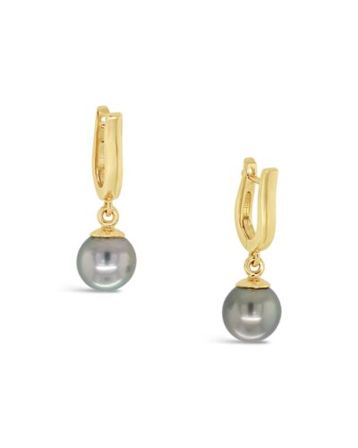 Harp Huggies with Abrolhos Black Pearls – 9ct Yellow Gold