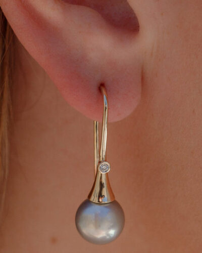 • Signature Flute Earrings with Abrolhos Pearls and Diamonds – 9ct Yellow Gold