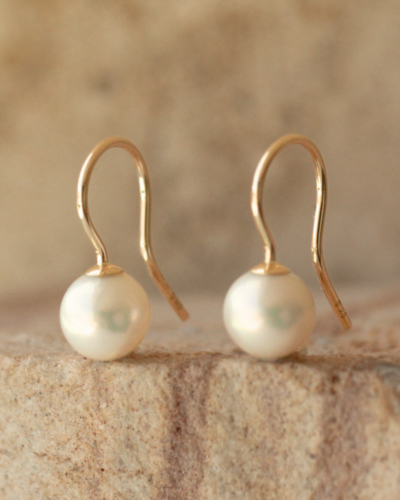 • Simple Akoya Pearl Hook Earrings – 9ct Gold