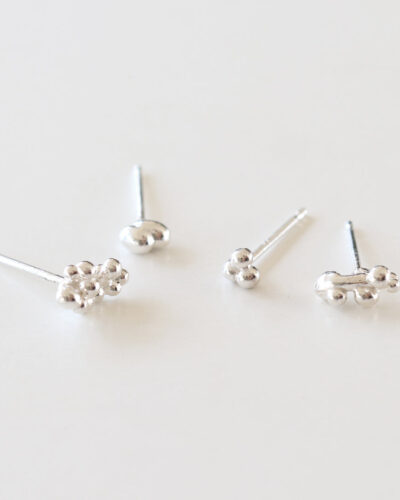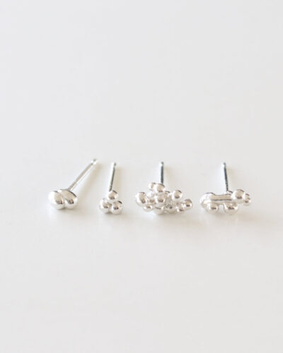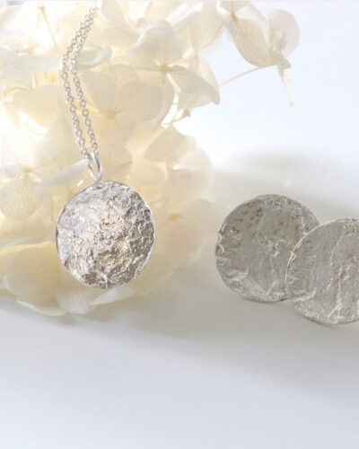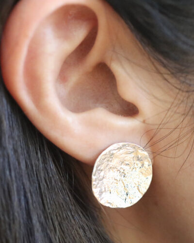 • Textured Round Stud Silver Moon Earrings – Sterling Silver