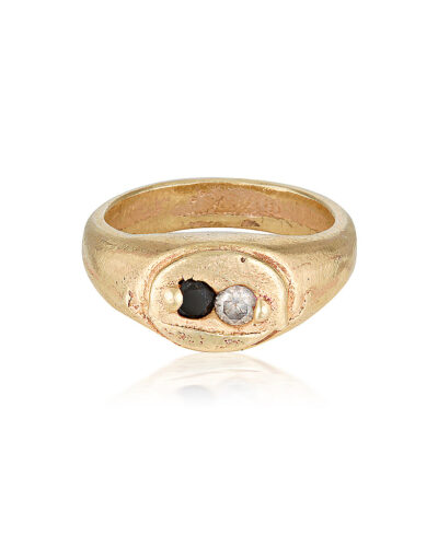 Harmony Signet Ring – 9K Yellow Gold, White and Black Diamonds