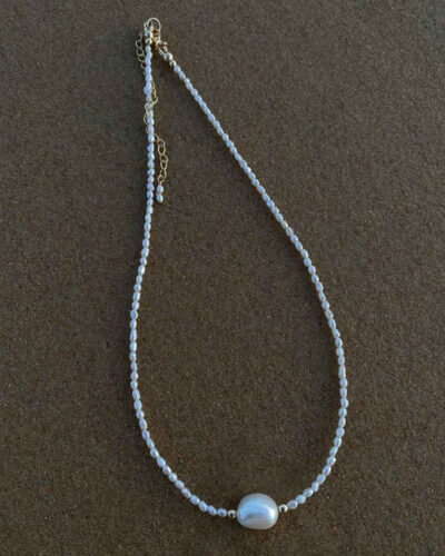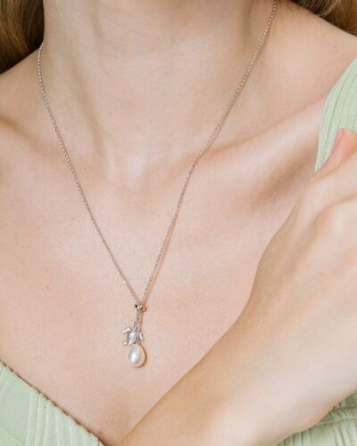• Wandering Pearl Necklace – Sterling Silver Rhodium Plated (Clasp)