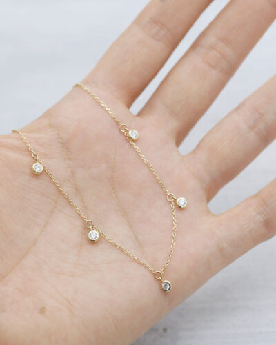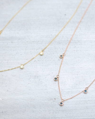 • Gold Square Tablet Necklace – Mixed Sapphire & Diamond