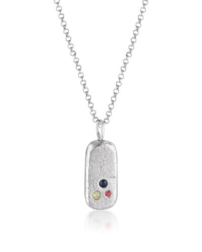Large Tablet Necklace – Sterling Silver, Mixed Sapphire