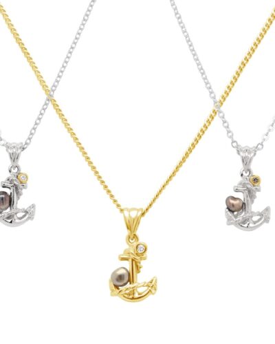 Small Abrolhos Anchor with Diamond – 9ct Yellow Gold + Keshi Pearl + Diamond