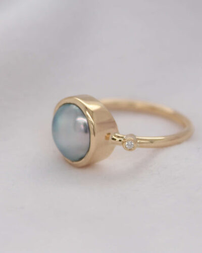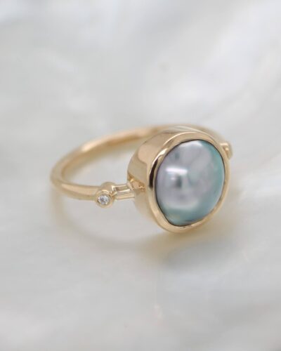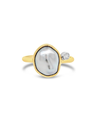 Abrolhos Keshi Pearl Ring with Diamond – 9ct Yellow Gold