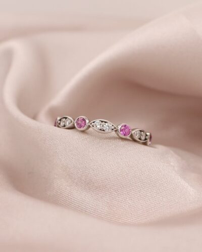Pink Sapphire and Diamond Ring – 9ct White Gold