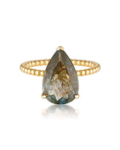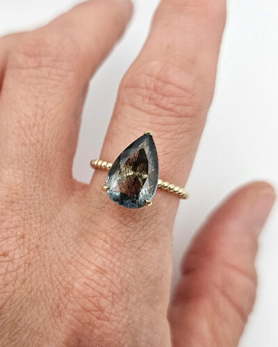 Pear Shaped Moss Aqua Ring – 9K Yellow Gold