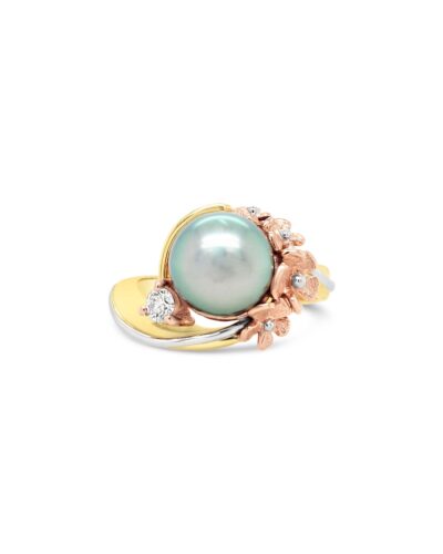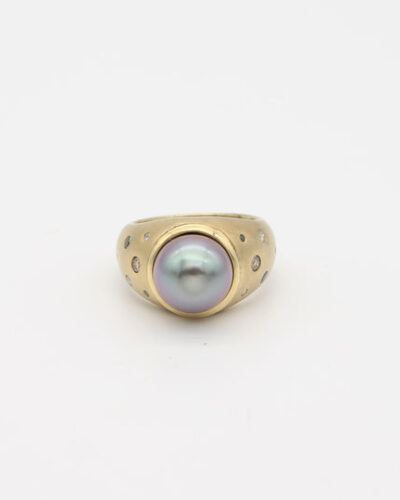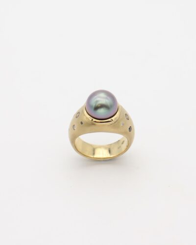 Black Pearl and Diamond Medley Ring – 9ct Yellow Gold