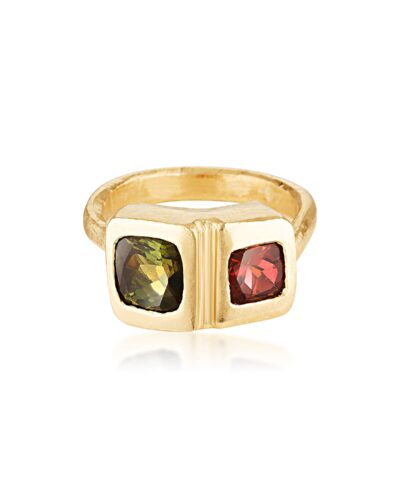 Pink & Green Tourmaline Ring – 9K Yellow Gold