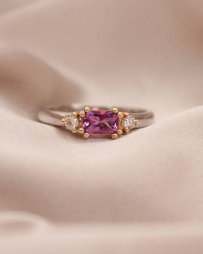 Pink Sapphire and Diamond Ring – 9ct White Gold