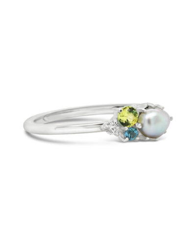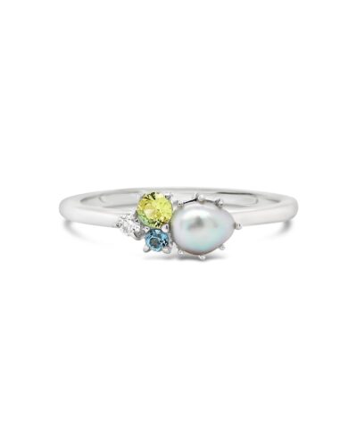Pearl and Sapphire Cluster Ring – Sterling Silver