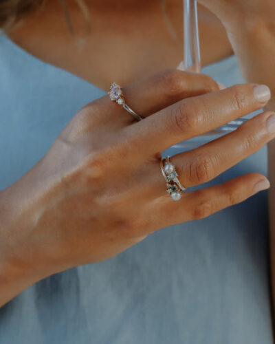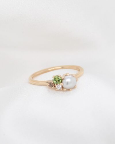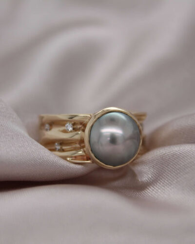 Oily Calm Tapered Ring with Pearl and Diamonds – 9ct Yellow Gold