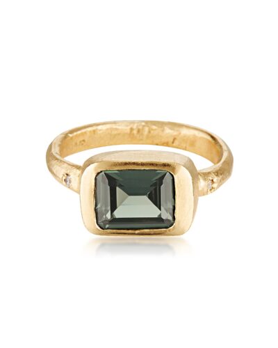 Green Tourmaline & Diamond Ring – 9K Yellow Gold, Lab Grown