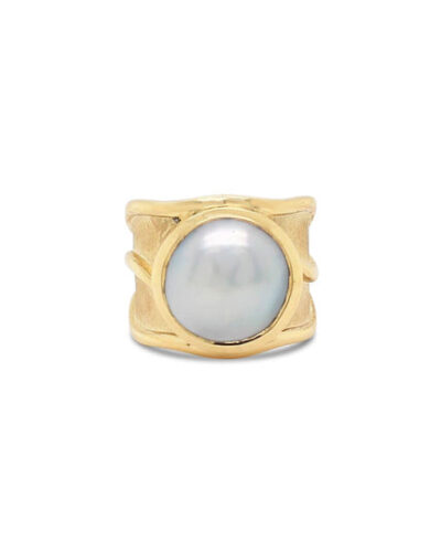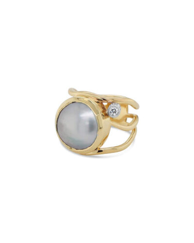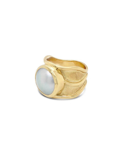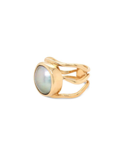 • Open Lexi Ring with Abrolhos Mabe Pearl – 9ct Yellow Gold