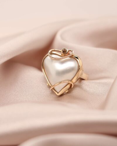 • Yellow Gold Ring with Heart-Shaped Mabe Pearl – 9ct Yellow Gold
