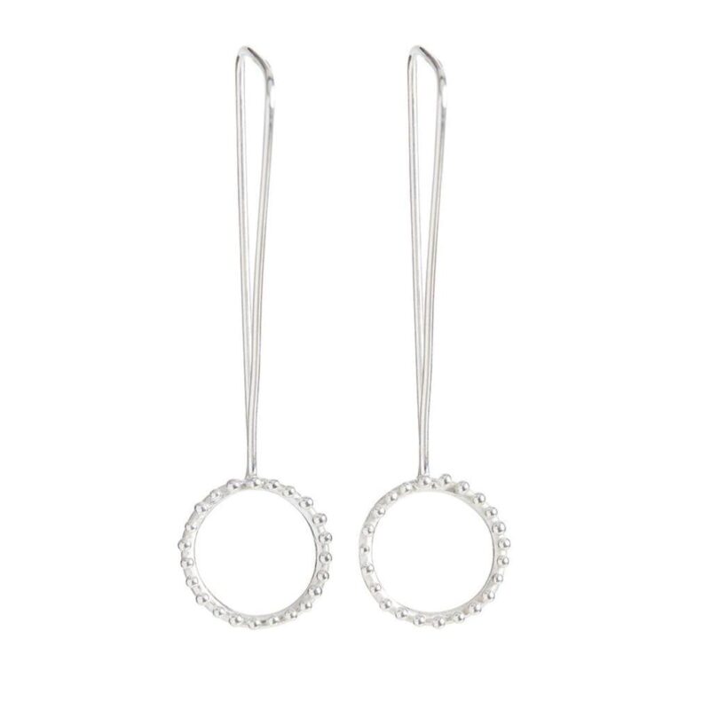 The Cloud drop earrings have been hand carved and display dotted detailing that is raised from the surface of the circular shapes that hangs at the bottom of the triangular tear drop hook.