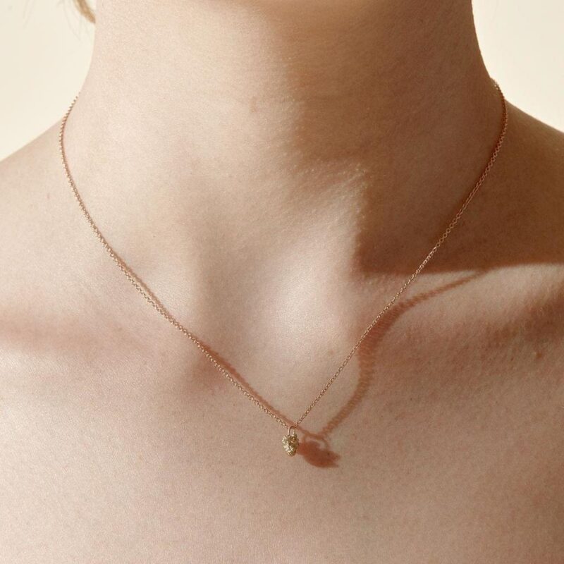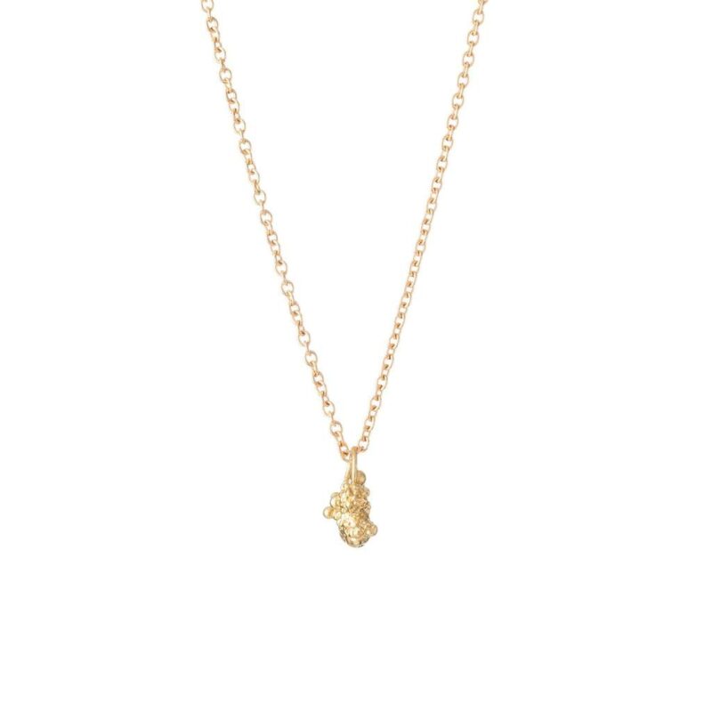 The Wattle Amulet is a delicate necklace which incorporates a solid gold wattle bloom detail suspended from a fine gold chain with clasp.