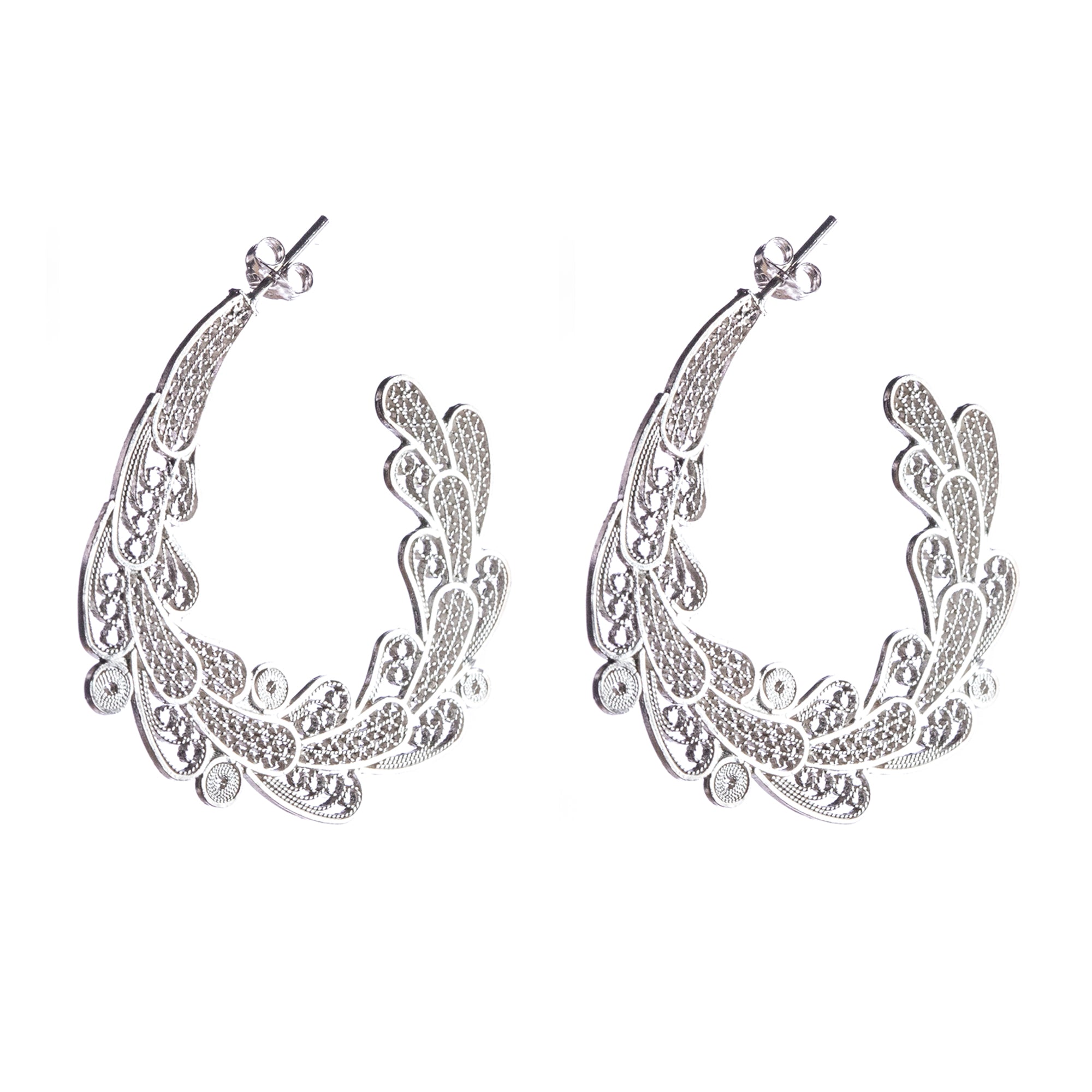 These botanical crown filigree earrings are made by hand using the intricate technique of twisting threads of silver to create stunning results.