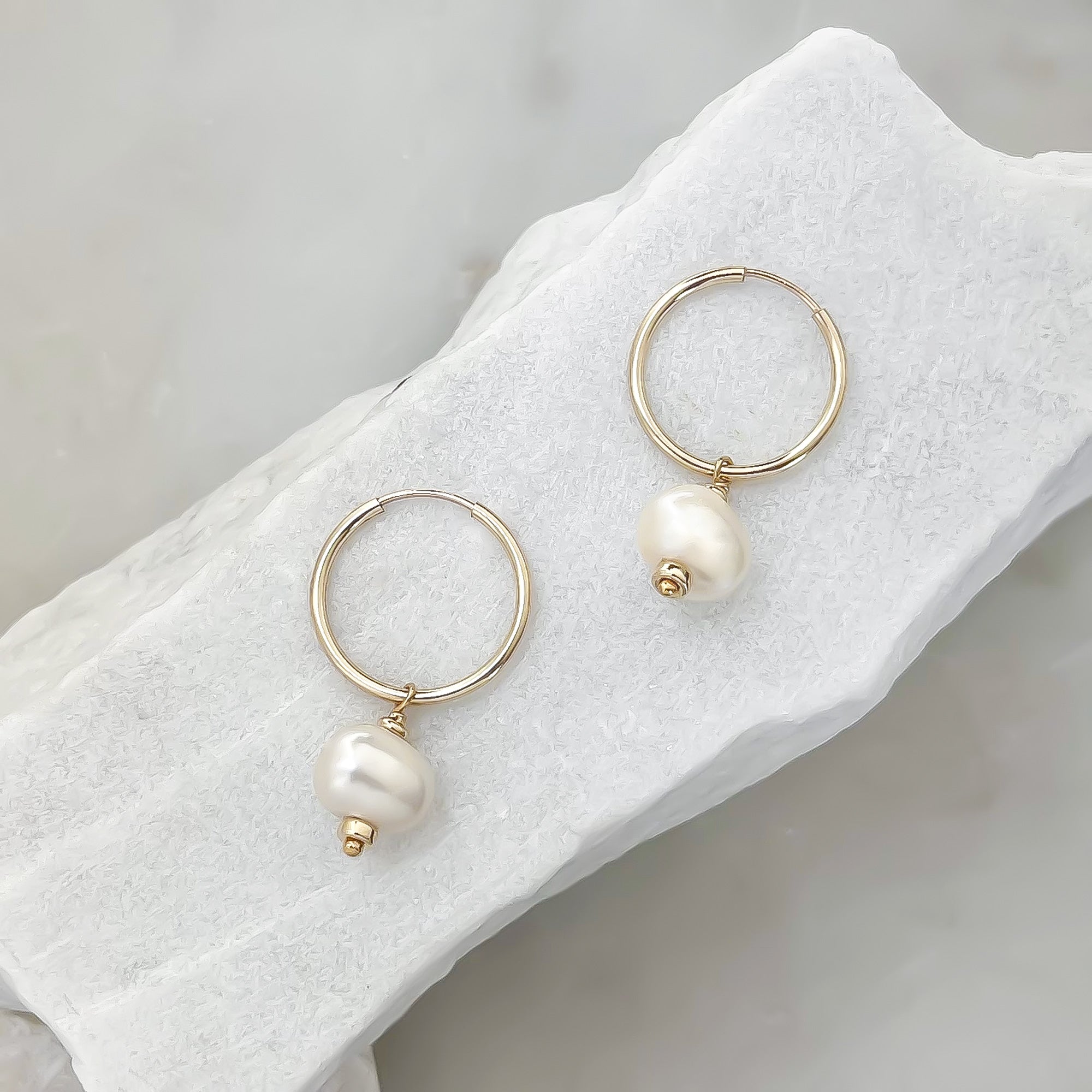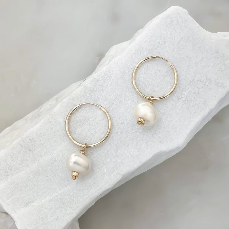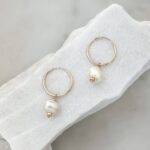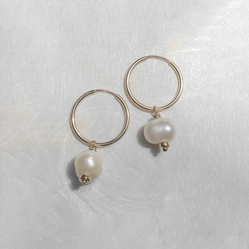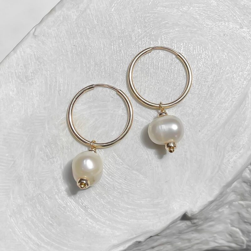 Classic little hoops featuring large freshwater pearls, highlighted with gold beads.