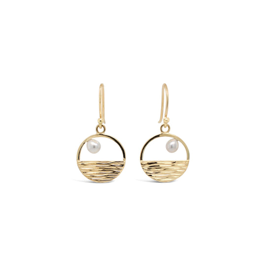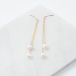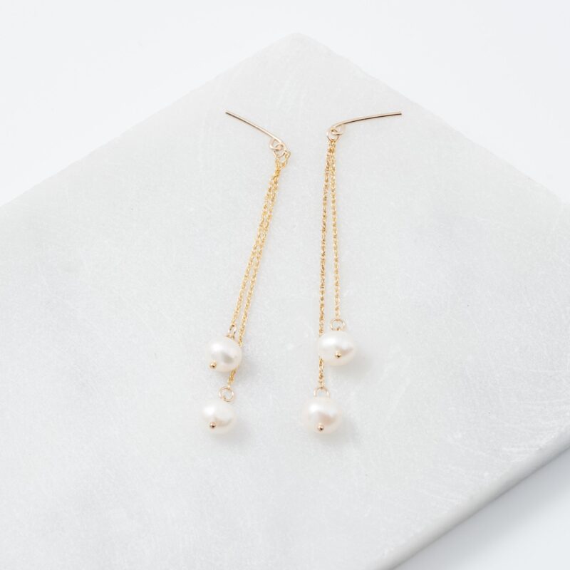 Rope chain drops with white freshwater pearls. The hand made ear post is sits delicately into the ear, allowing it to disappear, leaving just the chain visible.