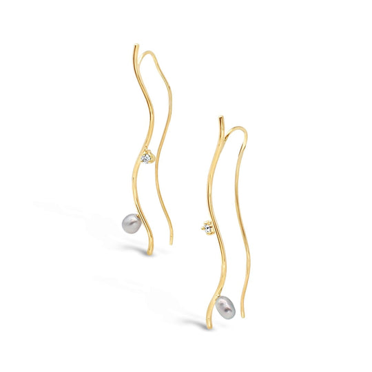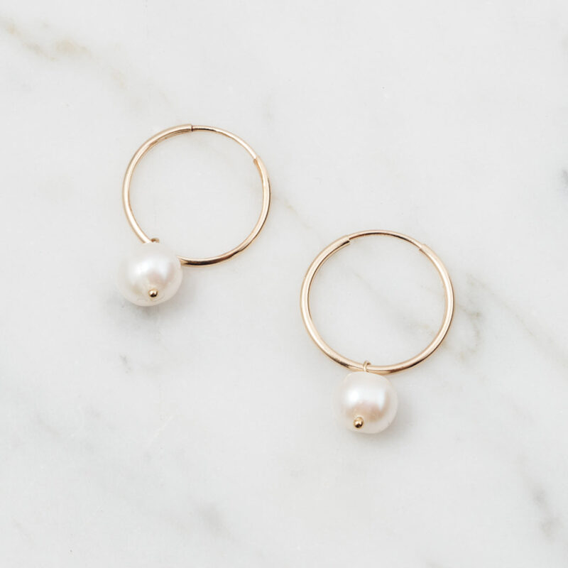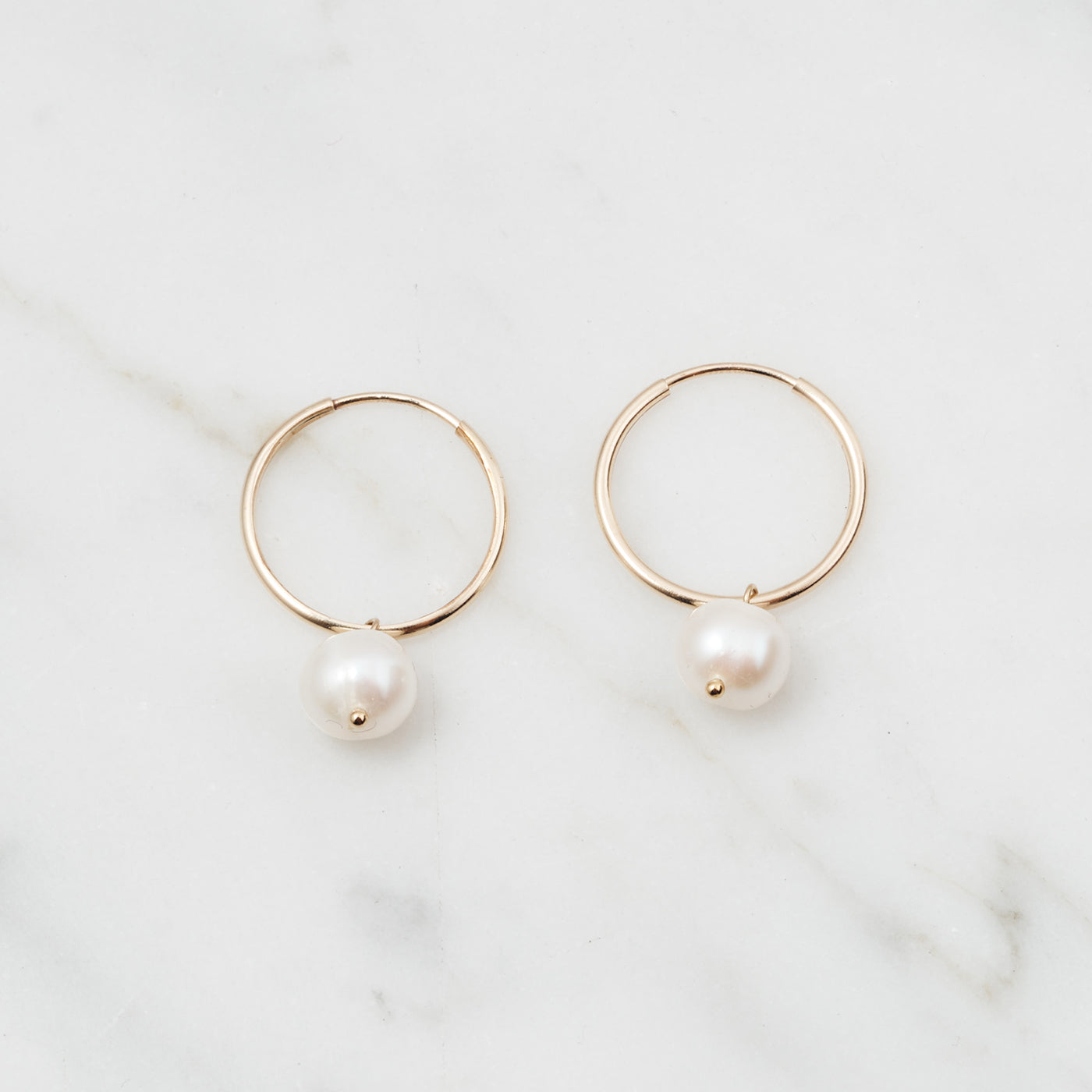 Classic freshwater white pearls suspended on endless sleeper hoops — timeless, minimal, and effortlessly wearable. Available in your choice of gold or silver.