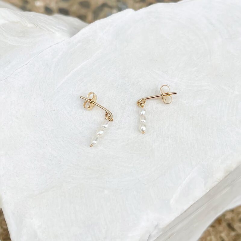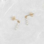 These super delicate pearl drop earrings feature a cleverly designed ear post that sits snugly inside the ear, making the three tiny pearls appear to float effortlessly — understated, elegant, and beautifully simple.