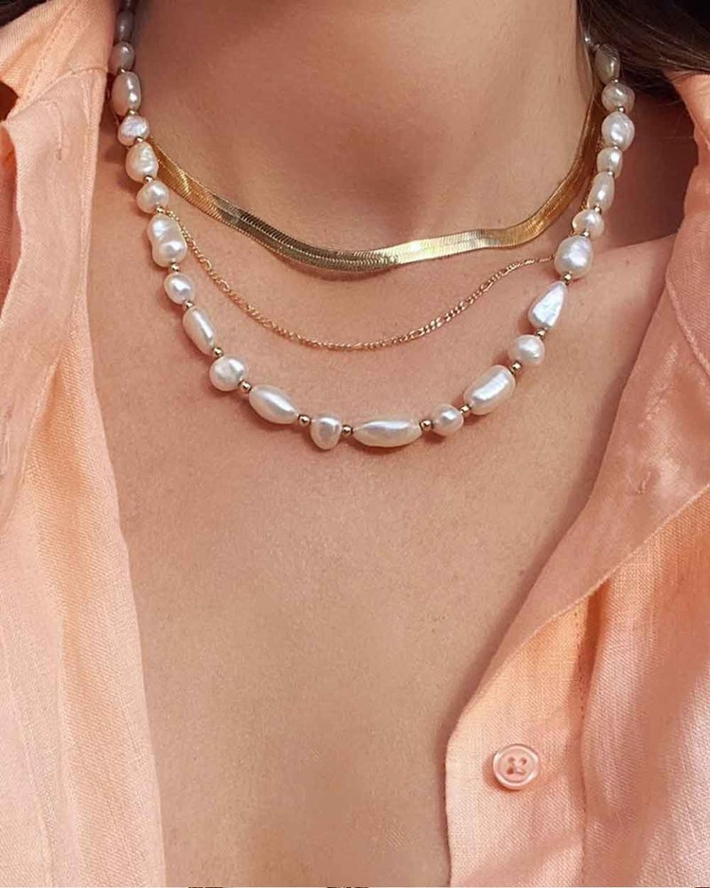 Meet the Ariel Pearl Necklace, a dreamy string of freshwater pearls inspired by the most iconic mermaid of all. Each luminous pearl is delicately spaced with gold accents nestled between, creating the stand-out statement pearl necklace you need in your collection. Slip it on and feel the magic of the sea, captured just for you.
