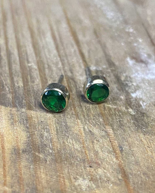Handcrafted in Sterling Silver these dainty Emerald Studs are rich in colour and classic enough for everyday. Handcrafted in the studio with sterling silver.