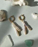 Indulge in the unique beauty of these gold-filled hoop earrings adorned with beautifully shaped coral baroque pearls – they’ll transport you to a majestic underwater world and make you feel like a mermaid!