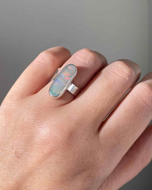 Oval Opal Ring – Sterling Silver