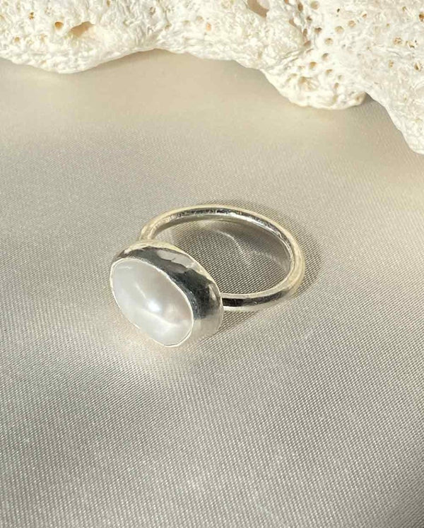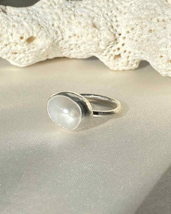 Handcrafted in sterling silver, this sweet little pinky ring features a luminous oval freshwater pearl, chosen for its soft glow and natural beauty. Size 5.5 — perfect for pinky styling or as a minimal statement stacked with your favourites.
