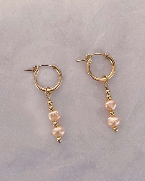 Peridot & Pearl Huggie Earrings – 14K Gold Filled