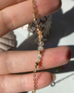 • Natural gemstones – smoky quartz, peach moonstone, labradorite, green amethyst.
