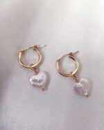 Sweet Heart Pearl Hoop Earrings – 14K Gold Filled