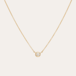 We’re positive the stars would cry if they saw this honey! Embrace elegance with the Orb Round Diamond Necklace. A bezel set round diamond on a fine yellow gold chain.