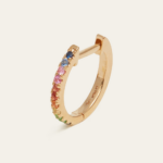 Your ear party just got real, baby! A small huggie with rainbow sapphires and tsavorite garnet in solid 14ct gold.