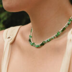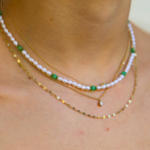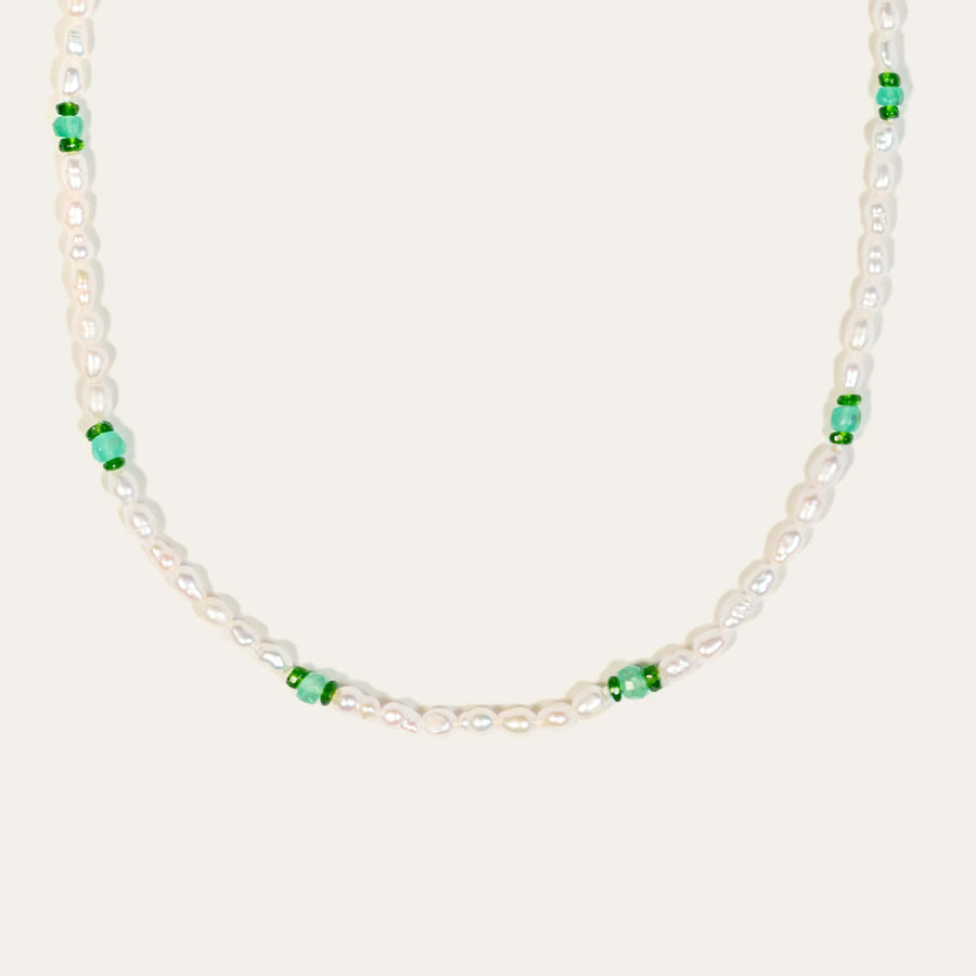 Sunny Bead Necklace Green & Pearl – 14ct Yellow Gold