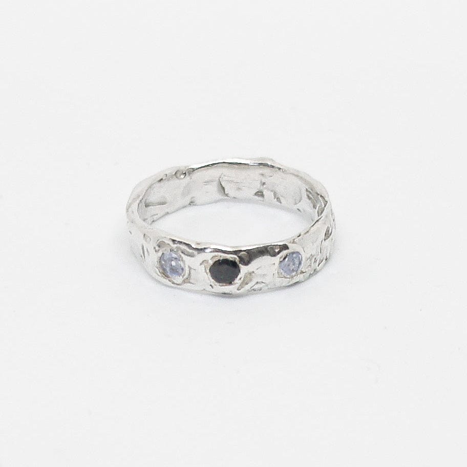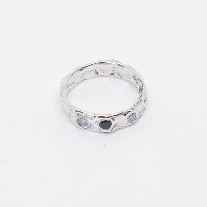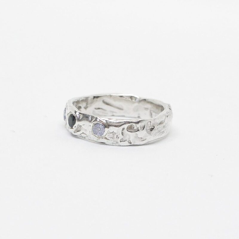 A dainty, elegant and unique ring, Celestia features purple and blue lab grown sapphires casted into an organic band. The colours of this piece are carefully chosen to illustrate an ethereal bloom.