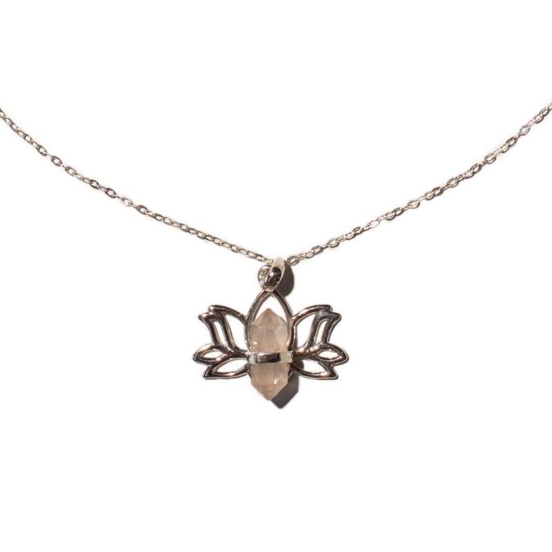Enlightened Lotus Rose Quartz Necklace – Sterling Silver