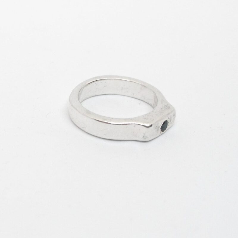 Riva showcases a deep blue sapphire – the colour of water – as the core feature of this ring casted in heavy sterling silver. Like a sleek signet style ring, Riva is an elegant yet bold ring suitable for all occasions.
