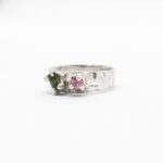 Like a lush garden in bloom, Verdora is inspired by the colours of a beautiful spring garden. Verdora features a green and pink tourmaline intentionally set in a high profile on an organic wide band – a luxurious elegant statement piece.