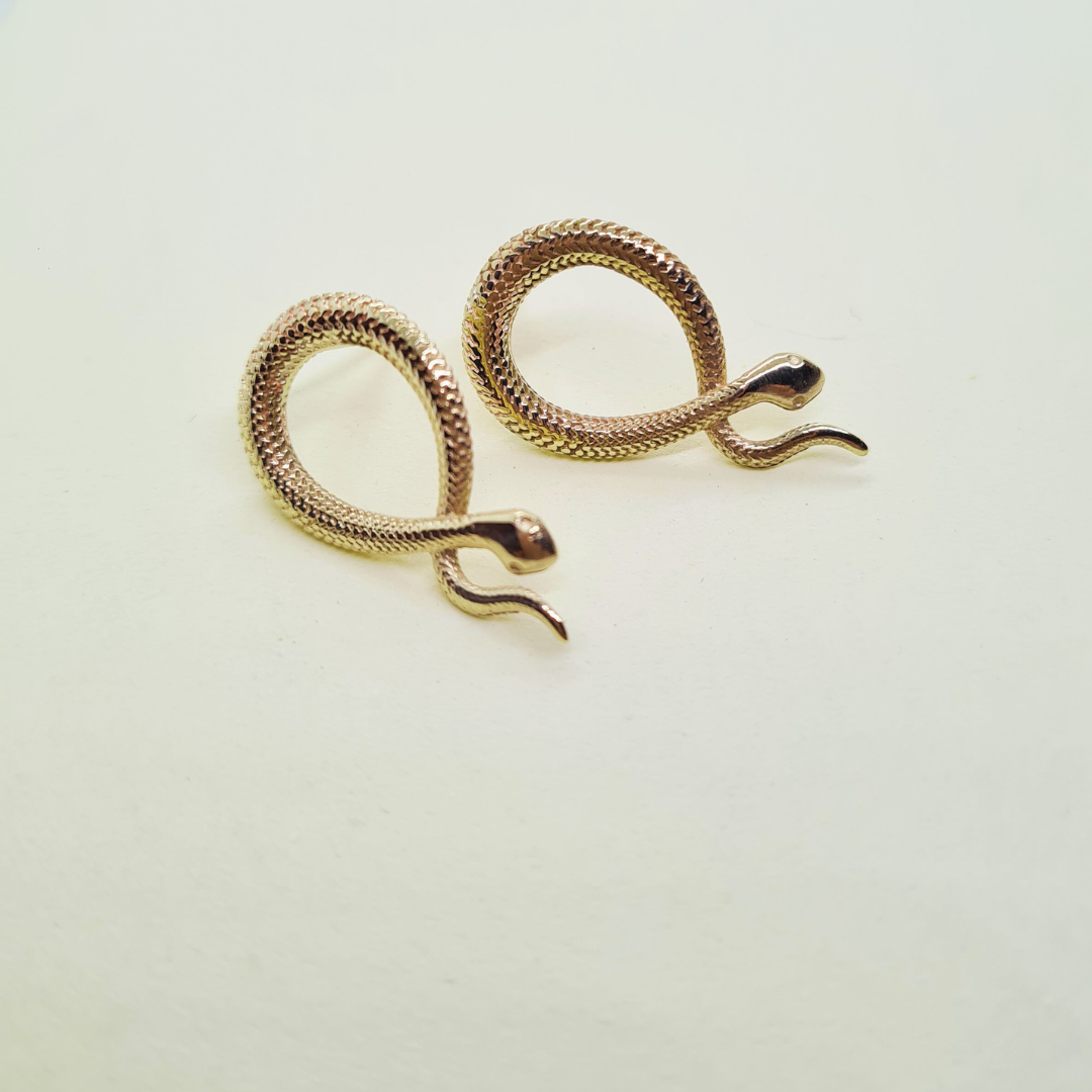 More than just jewellery. Elegance and symbolism combined in these detailed solid gold snake earrings.