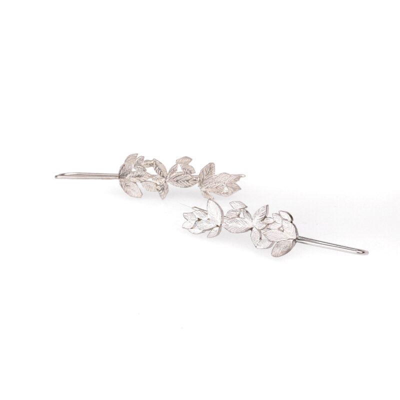 Sterling silver falling foliage hook earrings with hand engraved texture.