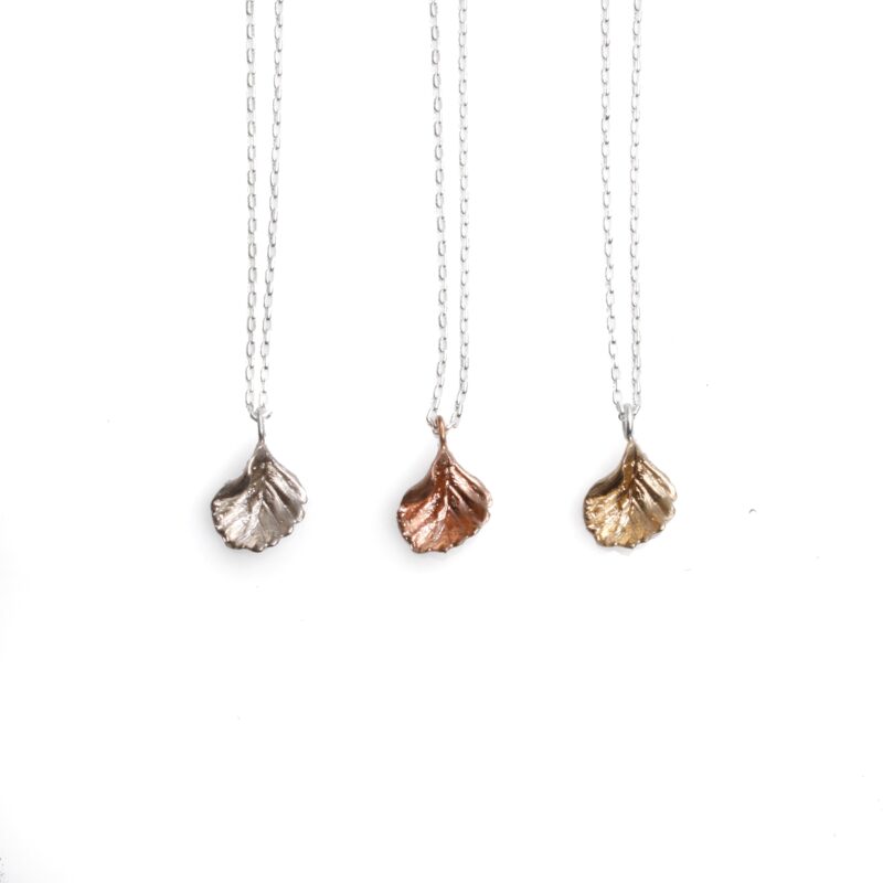 These beautifully delicate ‘Fagus’ necklaces are available in silver or gold.