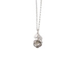 Sterling silver rose stem hook necklace with hand engraved leaves inspired by the Cecile Brunner Rose.