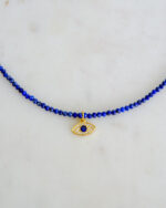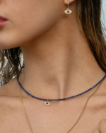 This necklace combines the power of the Evil Eye with the vibrant energy of lapis lazuli beaded chain. A perfect blend of protection and style, ideal for any occasion.