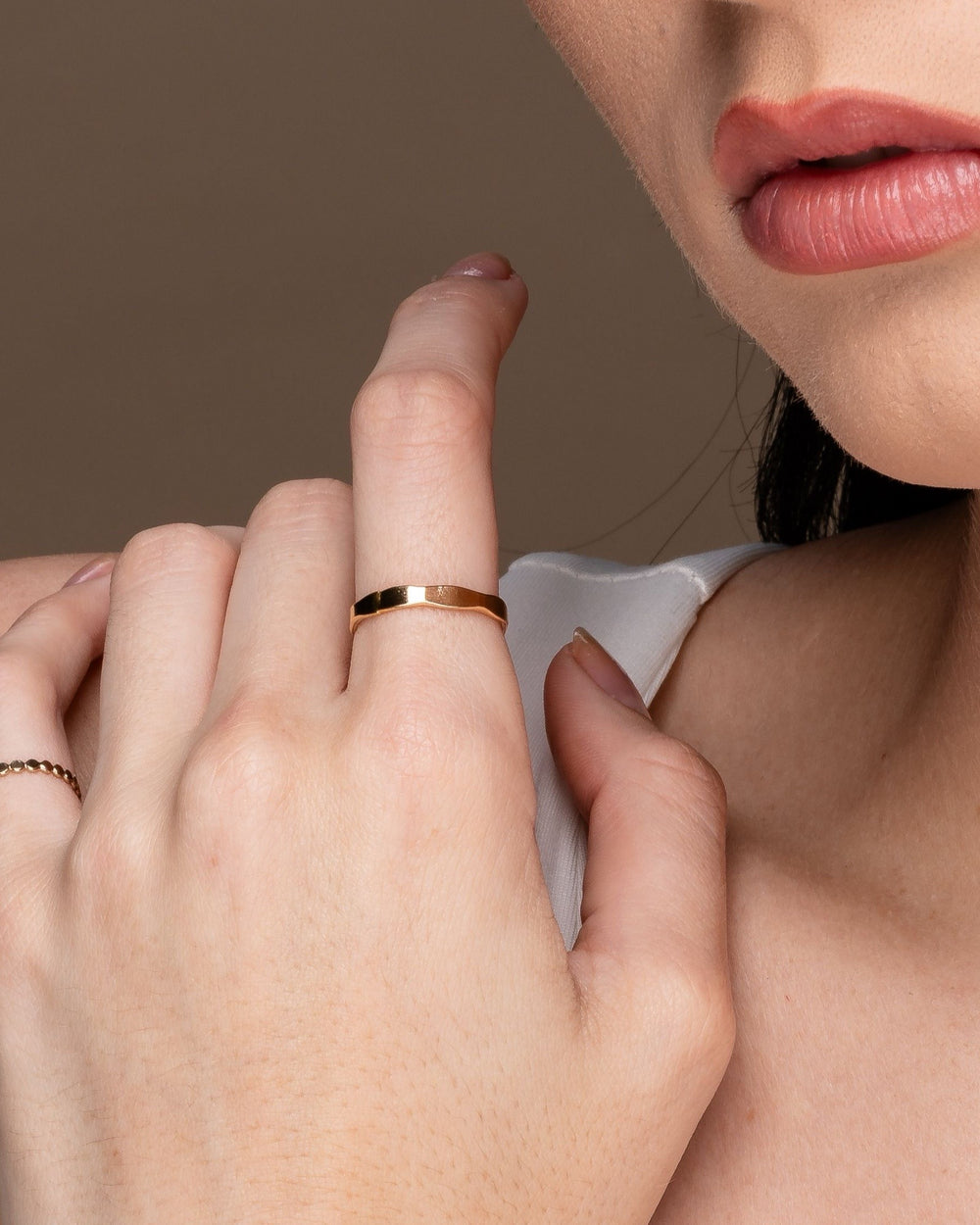Bold yet versatile, this thick hammered ring offers a unique textured finish that adds character to any look. Its sturdy design makes it perfect for stacking with multiple rings, allowing you to create a layered, statement style effortlessly. Ideal for both casual and dressy outfits.