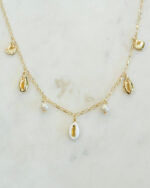 Embrace the allure of the ocean with our Marine Necklace, a captivating homage to seaside beauty. This layered piece showcases radiant freshwater pearls paired with gold-filled charms that shimmer like sunlight on the waves.