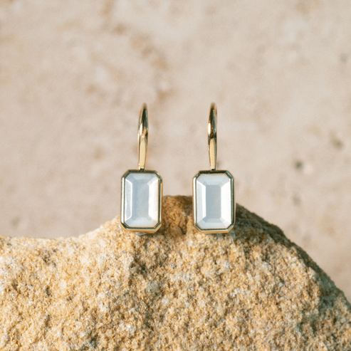 The Be Still Earrings are dainty heart shaped hook earrings. Handmade by Geneine in her Fitzroy North studio, these earrings are available in sterling silver and 9ct yellow gold, plain and with star set stones.